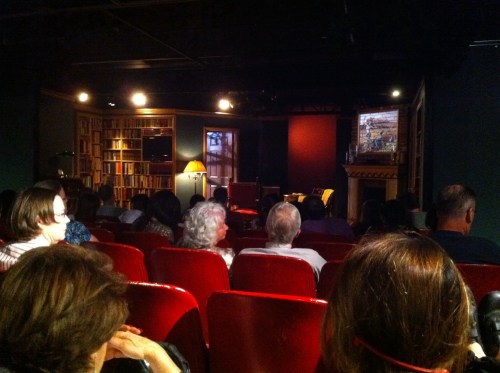 We love to people-watch, so we decided to have dinner at a sidewalk cafe. Then, off to the show. The theater was tiny – in fact, it was so intimate, I thought they were going to hand us scripts and ask us to play minor parts! Here’s a picture from our seats: