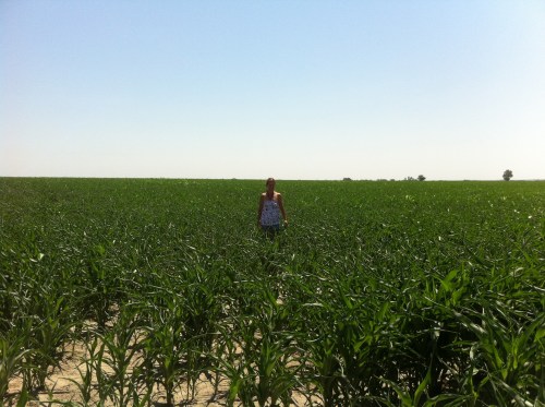 We spent all day yesterday driving across Nebraska and Kansas, ending the day in Kansas City, Missouri. There is a LOT of corn here … miles and miles of it. Here’s Dale out standing in her field of corn: