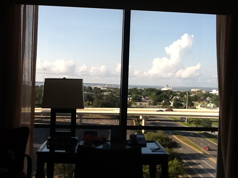 We’re in Pensacola and decided to splurge on the hotel. Here’s the view from our bed.