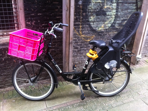 This is the most common bike we’ve seen here. It has a shield to keep your pants leg or skirt out of the spokes and a rack on the front for passengers…