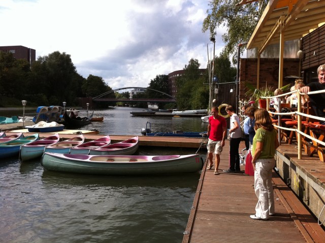Today we visited Susanne, Frank and Lennart. We visited in their apartment and then, since the weather was so nice, we rented a canoe and padddled through the canals and lakes in the heart of Hamburg.