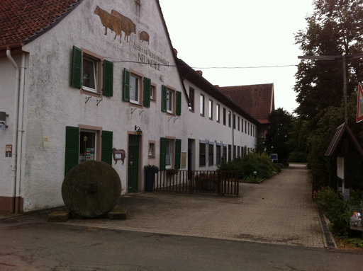 The story that has been handed down in the family is that the ancestor that built the mill was drafted into Napoleon’s army and fought in the Russian campaign. When he left Neu Mühle, the mill was operating and a hired man was left in charge. When our ancestor returned, the hired man was gone and the mill was in ruins. And no building remains today, although the site is now occupied by a school for young farmers. Here it is: