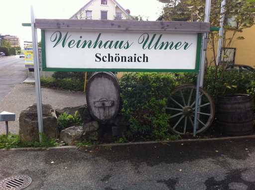 We saw vineyards all through our drive from Munchweiler to Schönaich and it looks like some distantly-related Ulmers here in Schönaich have gotten into the wine business.