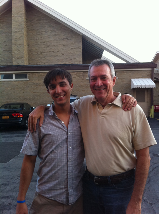 Trevor found a room at a Catholic church in town. The building is dormitory style, set up like a convent. Here I am with Trevor next to the church.