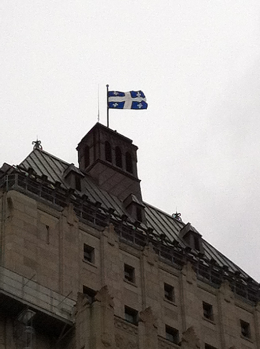 Then we noticed that the flag we saw flying all over Quebic was a blue flag, the Québec Provincial flag, not the red and white maple leaf Canadian national flag.