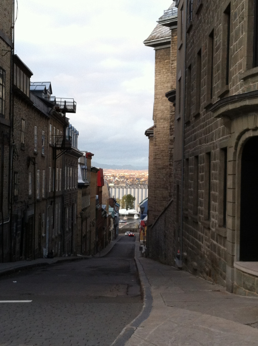 We continued on down to the lower old city where we had dinner. In the picture below you can see modern Québec in the background behind the tall cylindrical structures which are grain elevators.