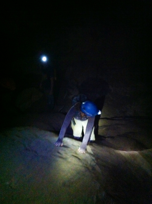 We went into the cave about 100 feet and bumped into one of the cave caretakers coming out. He told us we needed helmets and was nice enough to go get us some.
