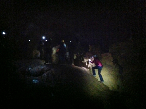 Well equipt, we continued deeper into the cave and saw our kids and crew coming down the opposite side of an underground cavern.
