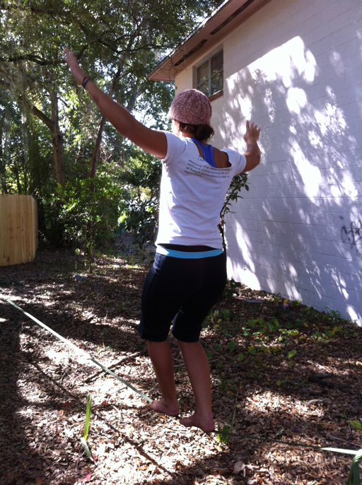 This morning we had an early lunch with Kyle and Kelly. But, first, we stopped at Kelly’s house so she could show us her slack-lining skills. Trevor’s really good at this, too, and I’m guessing that Kyle enjoys this sport as well.