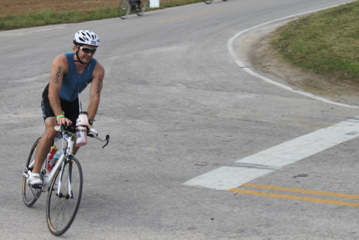 Kyle hustled over to his bike and changed as Jordan finished the swim and joined him. Kyle had plenty of energy left for the bike race.