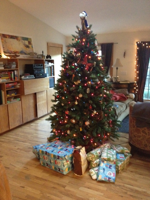 Looks homey (no pun intended)…what’s for din din? Beautiful tree! Have fun:)