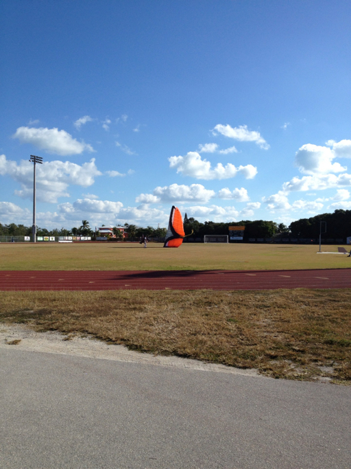 We drove over to the football field to see if he needed any help. We arrived just as he touched down. He gave a very loud “yahoo!” once he was back on the ground.