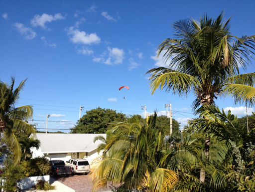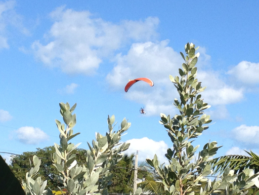 He had taken off from the high school football fields that are behind our neighbors across the street and he was trying to land there, but he was having difficulty because the wind had kicked up to about 20 knots!