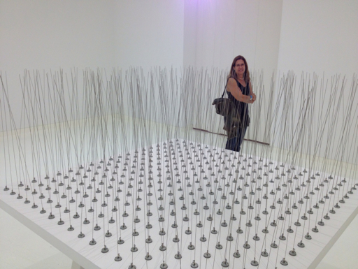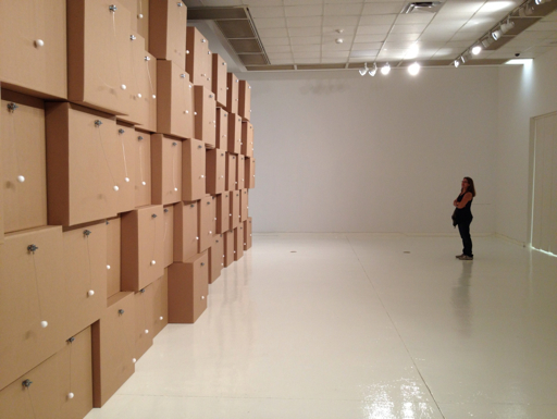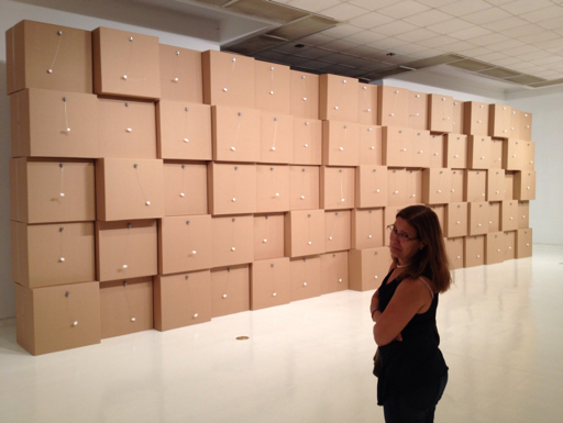 The docent told us that Zimoun “tunes” each motor and box to give off a particular sound. And I can vouch for that because I tapped one of the boxes and it was like a drum – more bass towards the center and more treble at the edge.