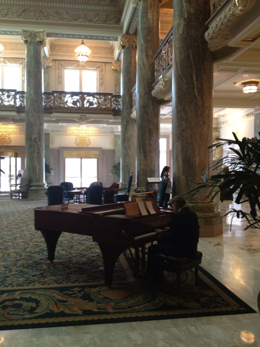 We heard that the Joseph Smith Memorial Building, which was originally built as a hotel, had a restaurant near the top, called the Garden Restaurant. Much of the building still feels like a hotel and though it is (I think we were told) 100 years old, it has been immaculately rstored and maintained. The lobby was very opulent, complete with grand piano entertainment.