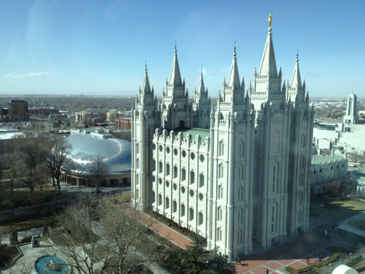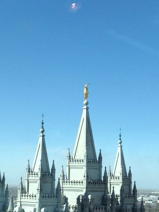 The view from the restaurant was fantastic. Here’s the Temple on the right and the Tabernacle on the left. The gold figure on the top of the Temple is the angel, Moroni.
