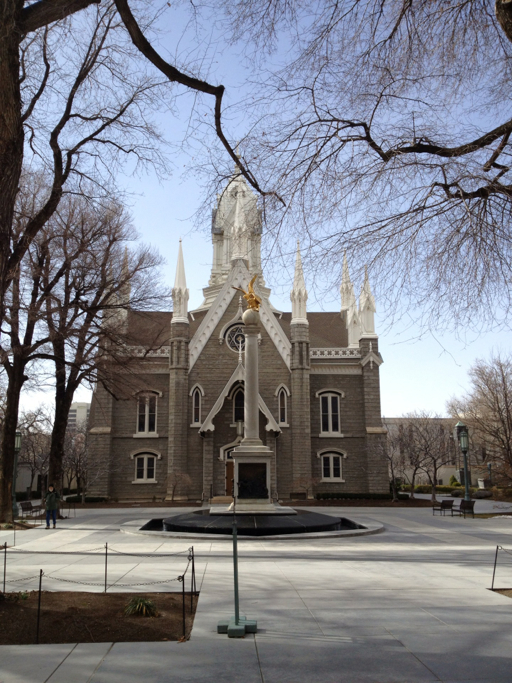 It took the Mormons 40 years to build their Temple in Utah. Most of the building was constructed from hand-hewn granite, hauled from over 20 miles away on ox-carts. It is a very impressive building. That,s the front of the Temple behind us.