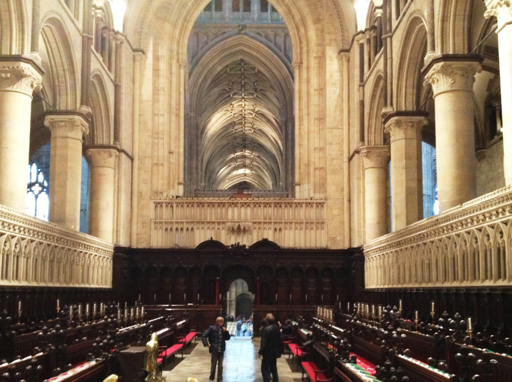 Inside, we toured the room just beyond the Nave where Archbishop Thomas Becket was murdered by agents of King Henry II in 1170. Then we went into the crypt, back up into the Chapel, and into the Quire where I took this picture looking back into the Nave.