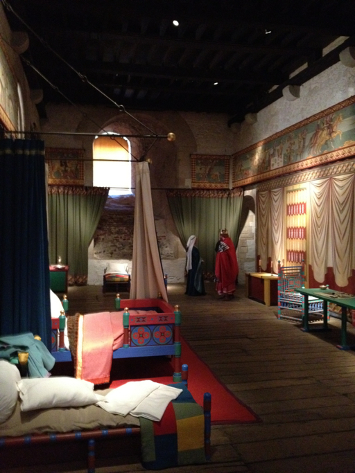 Here’s the King’s Chamber. Lucky for us, he was in residence when we visited (of course, neither the King, his Lady, nor the furnishings are original).