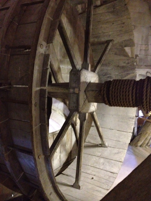 And here’s the mechanism that the builders used to bring building materials up to this level from the ground. It stands about ten feet tall and was turned by two men on each side and would take 1/2 hour to raise 1/2 cubic yard of rock.