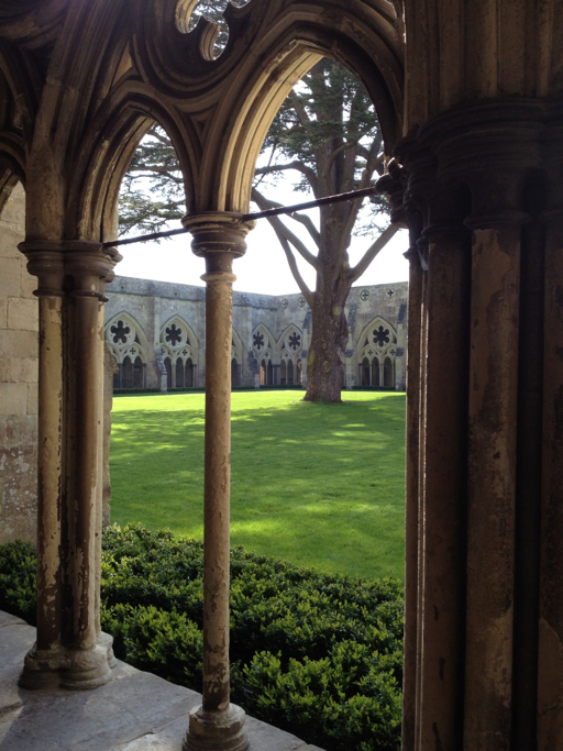 Before I describe the tour, let me show you the cloisters that are attached to the cathedral. These are unlike normal cloisters, which are the bedrooms of monks, because there are no monks in the Anglican faith. These cloisters are used by the clergy for dressing and preparing for services. The cloisters form a square, surrounding two huge Lebanon Cedars.