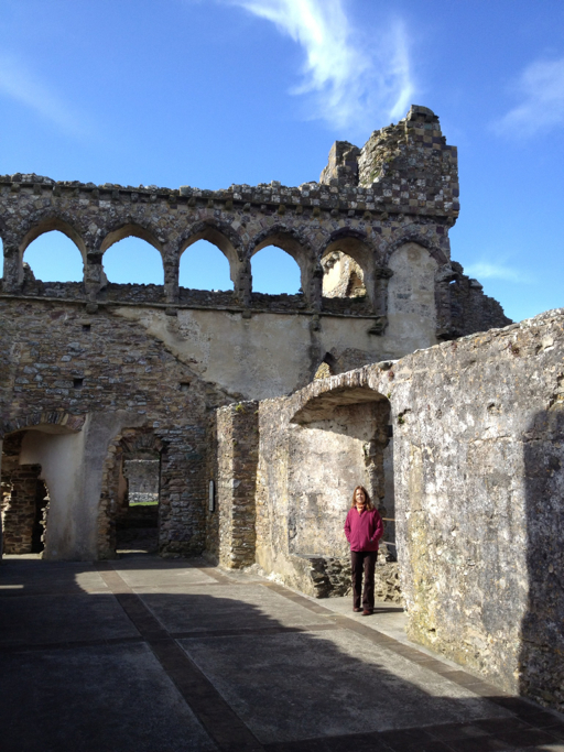 After our walk around Tenby, we headed off to visit the nearest bishop’s palace in Lamphey. All that’s left today are ruins because, after Henry VIII kicked the Catholics out of England, he appropriated all the Church lands, including the bishop’s palaces, and gave them to his pals. The Lamphey Bishop’s Palace went to the Devereaux family and was ultimately damaged in the English Civil War in the 1640s and abandoned.