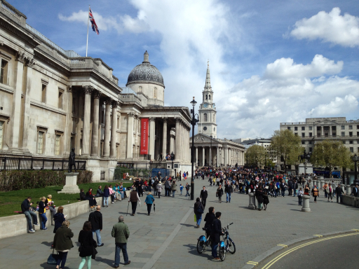 First stop, Trafalgar Square; that’s the National Gallery on the left and St. Martin-in-the-Fields Church in the background: