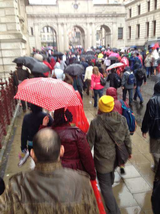 But the Big Mistake was that the London Marathon was just ending – and Buckingham Palace was the finish line! In the rain. In the cold. And because it started out as such a nice afternoon, we didn’t have umbrellas or rain jackets, though everyone else did.