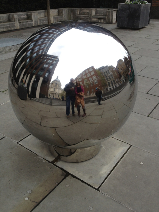 We walked into, but opted to not tour, St. Paul’s. Passing around the church grounds we came upon this polished orb and took a self portrait with St. Paul’s in the background.
