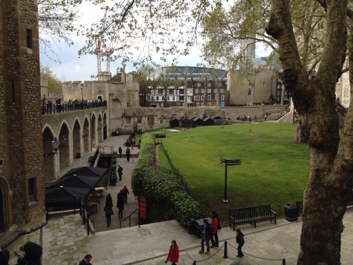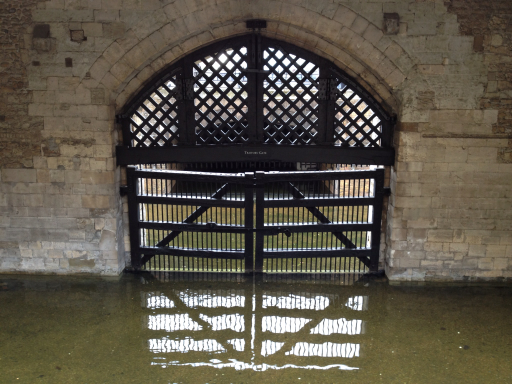 Along the river, the moat is full of water and there’s a gate called the Traitor’s Gate that opens into the moat so that the castle can be accessed from the Thames. This gate got its name from the fact that in Tudor times the Tower of London became a prison and place of execution (Anne Boleyn, one of King Henry VIII’s wives, was beheaded here). It was common practice for the king to declare a political adversary a “traitor” and then have him or her shipped off down the river to the Tower to be imprisoned there; hence, “Traitor’s Gate.”