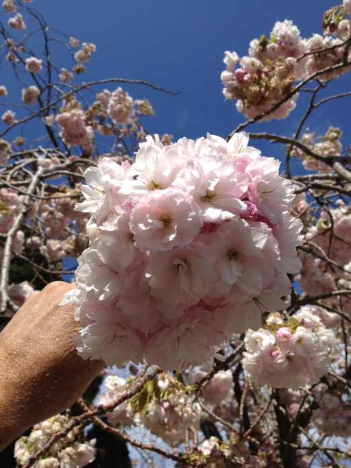 After leaving the tower, we walked to St. Mary’s Church, parts of which may also have been from Norman times, surviving the destruction of 1377. The cherry blossoms were in full bloom.