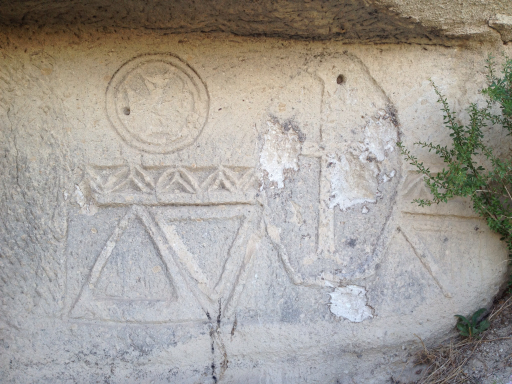 Leaving the church, we passed this engraving on a nearby wall. There are plenty of frescoes painted in the cave churches here in Cappadocia, but I hadn’t heard of anything like this. I’m pretty sure this was quite unique.