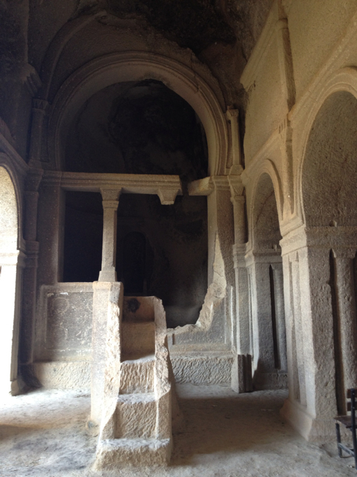 It was a columned Christian church, carved into the cliff! We entered through the large cave opening to the right, inside of which was this carved entryway…