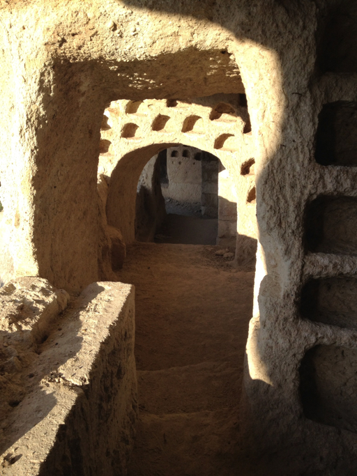 These chambers had living quarters, including rock-hard beds (pardon the pun). Perhaps this was a monastery.
