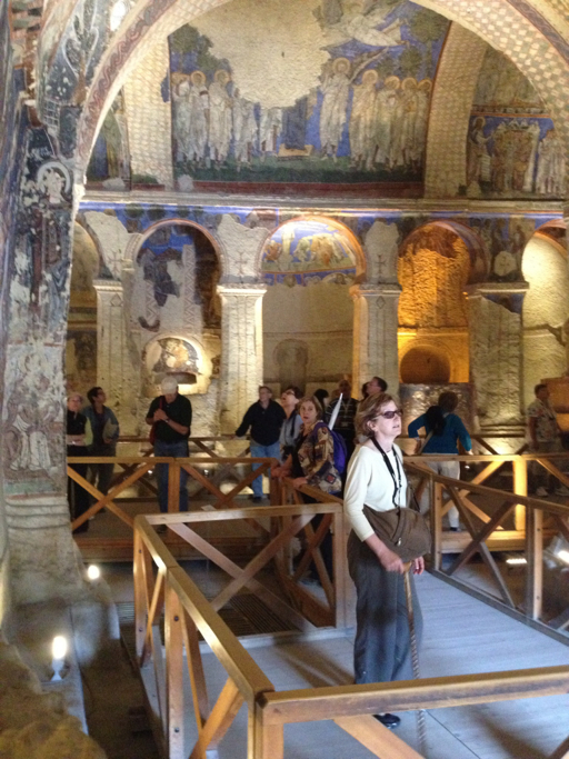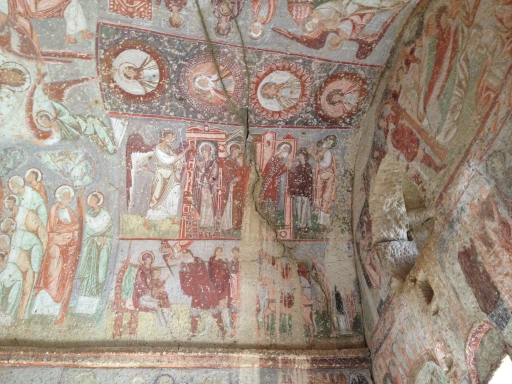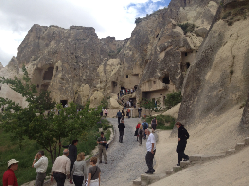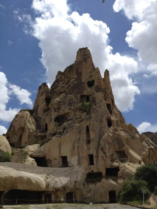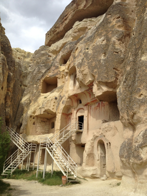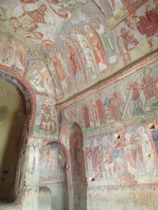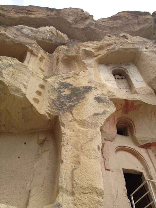 I’m going to be brief on this one. Here’s the story: late 300s A.D., three priests (or bishops, the audio guide might as well have been in Turkish) and a nun got in a big theoretical argument with the head honchos of the Christian Church in (I think) Constantinople about icons. These four attracted a following of monks and nuns, all of whom had been ascetics, living the solitary life in Cappadocia. They built a convent and a couple churches in the rocks in close proximity to each other. Years passed, the monks and nuns drifted off, tour buses showed up.