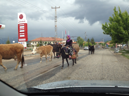 But the highlight of our time in the Ihlara Valley occurred after we hiked back up the steps to our car and started to drive back to Göreme. It was time to bring the cows home for the night.