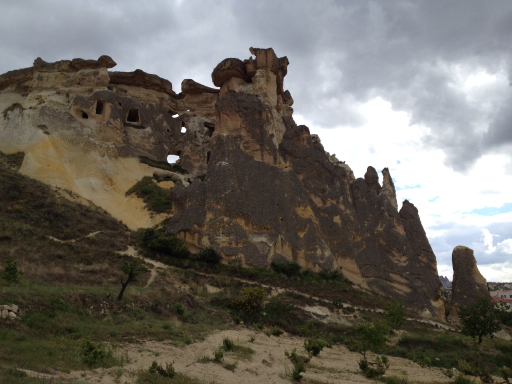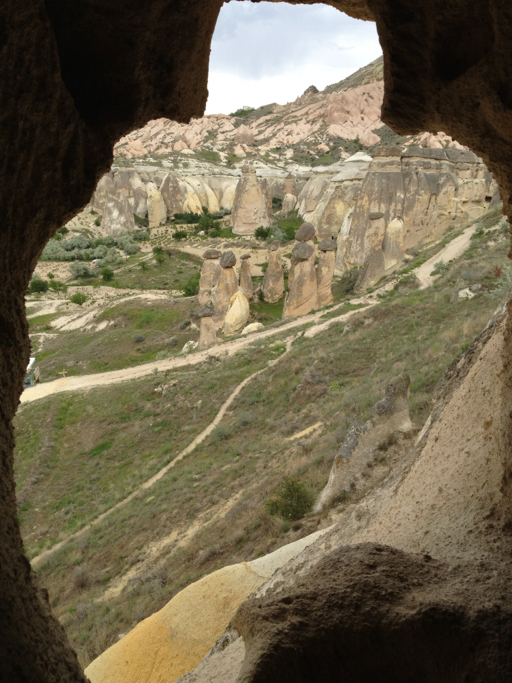 Past the Nave was the monastery. A good part of the monastery had fallen away. I took this picture of what Mehmet called the “mushroom rocks” from the monastery side.