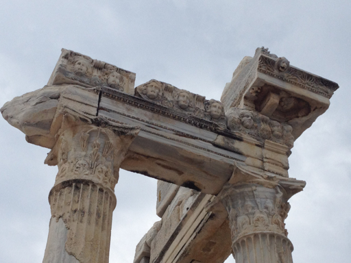 The lower parts of the columns in the pictures above are modern, but you can see where broken parts of the original columns have been inserted. It looked like the modern restoration and erection of the columns was intended to provide support for the re-erection of the lintels, or headers, and the decorative upper façade.