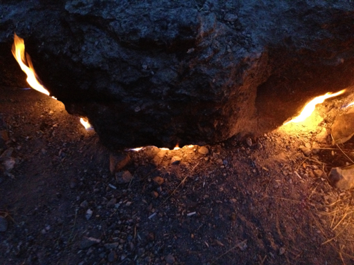 But as we got closer, we could see that there was no wood burning. The flames were coming straight out of the rock!