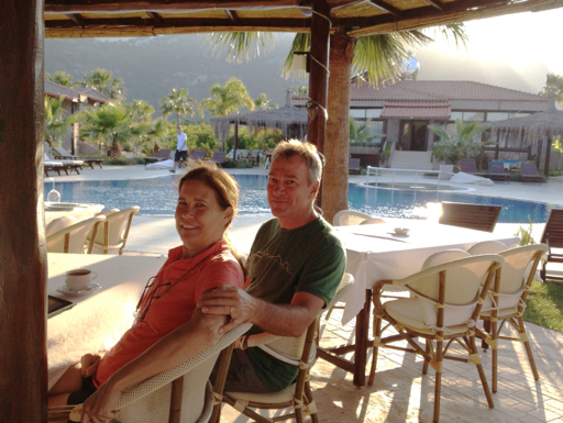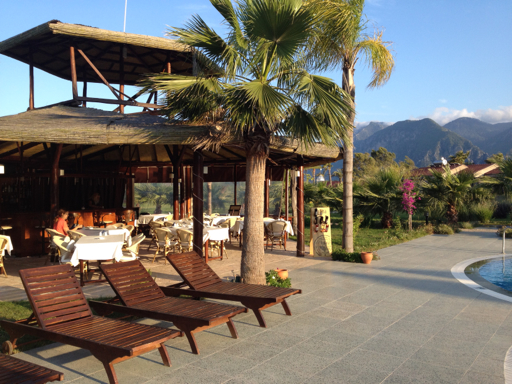 To get to Çıralı from the main road, we had to drive down a narrow, steep, twisting road to the Sea. We drove past all the beach pansiyons, looking for something away from the water for a change. The road continued and narrowed, becoming a small dirt track as we followed small signs to the “Nerissa Hotel,” at one point passing chickens in the road and farm refuse strewn alongside.