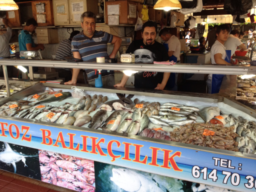 We got off at the Fethiye Archeological Museum, then walked around the shopping district for a while. At one point, we passed these guys, doing what most Turkish men seem to do in the afternoon: drink tea and play Rummy Cube.