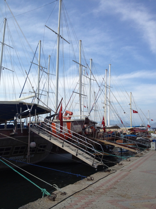 A very popular thing to do in Fethiye is to go on one of the 12-Island boat rides. There are dozens of beautiful wooden motor-sailors just waiting for passengers to board their stern gangways.