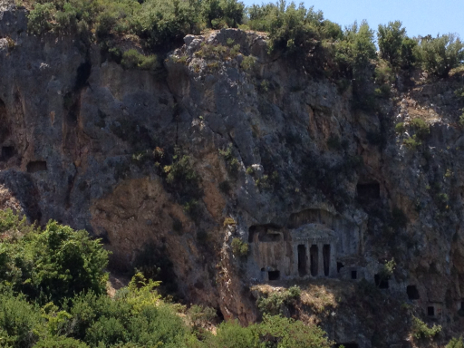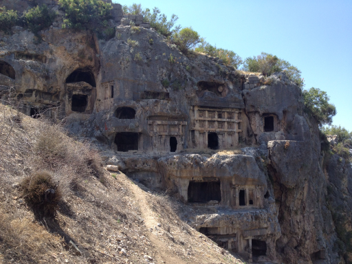 Well below the Acropolis – you can see it in the photo above – is a columned tomb carved into the cliff face: the Tomb of Bellerophontes, rider of Pegasus. From across the valley, we couldn’t figure out how the creators of the tomb had been able to access that part of the cliff face.