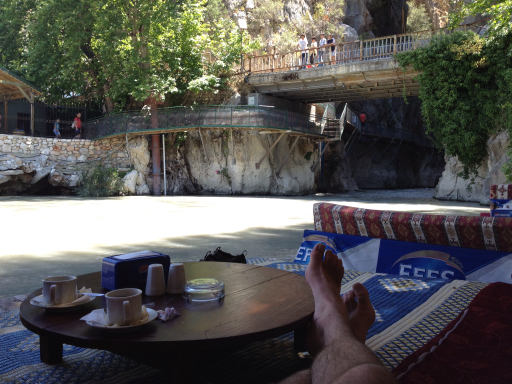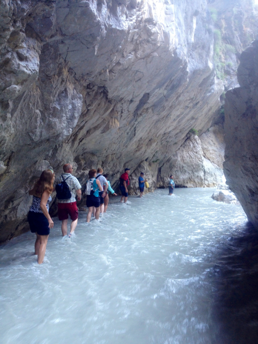 This morning, we left early and drove up into the mountains to the Saklıkent Gorge, discovered as recently as 1986. In Arizona, if dry, Saklıkent would be known as a slot canyon. Supposedly, at 11 miles long, it’s the third longest canyon in Europe, assuming you consider Turkey to be in Europe.