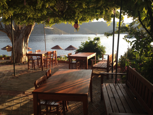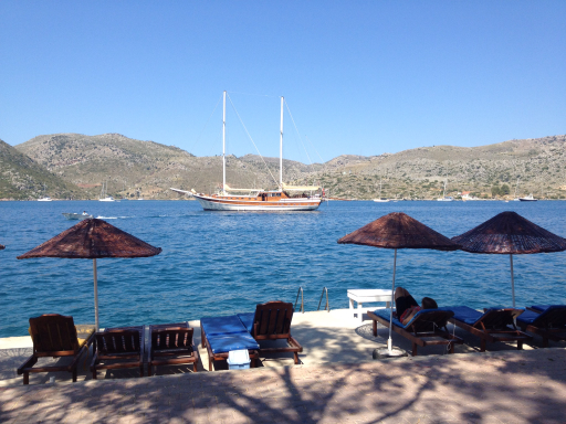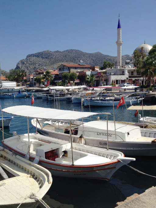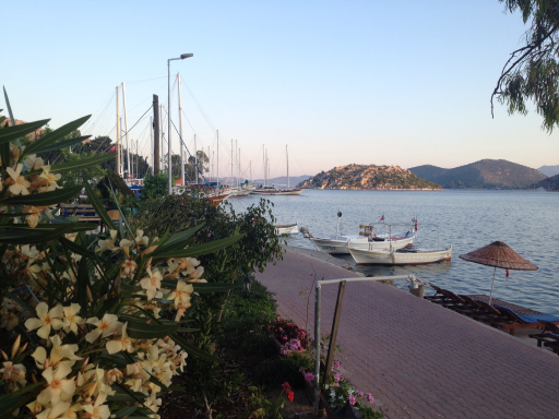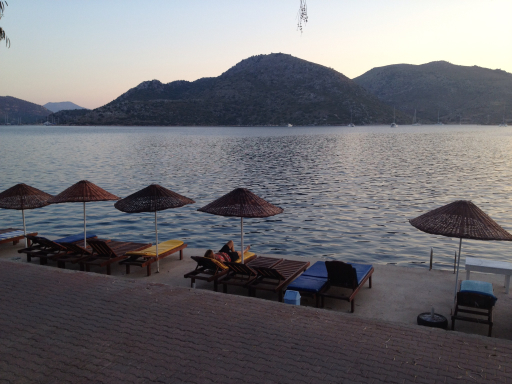 We’re staying at a delightful little place called the Suna Pansiyon. It has a wonderful terrace overlooking the harbor…