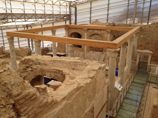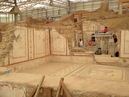 But notice that modern structure in the background in the above photos? That is an active archeological dig, covered by a huge cable and canvas roof constructed in 1979, known as Terrace House 2.
