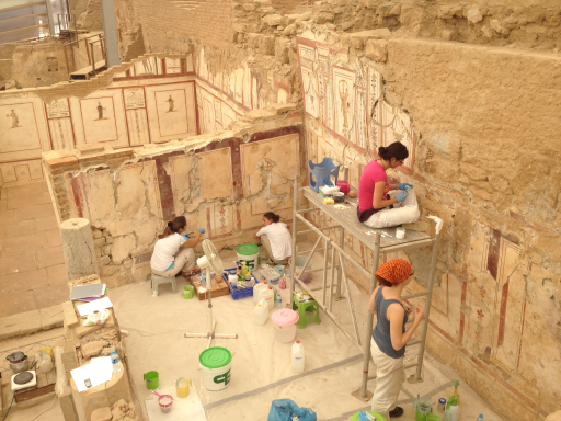 There was a lot of activity on the second and third levels where the workers were meticulously peeling back the debris and layers of plaster that had built up over the ages…