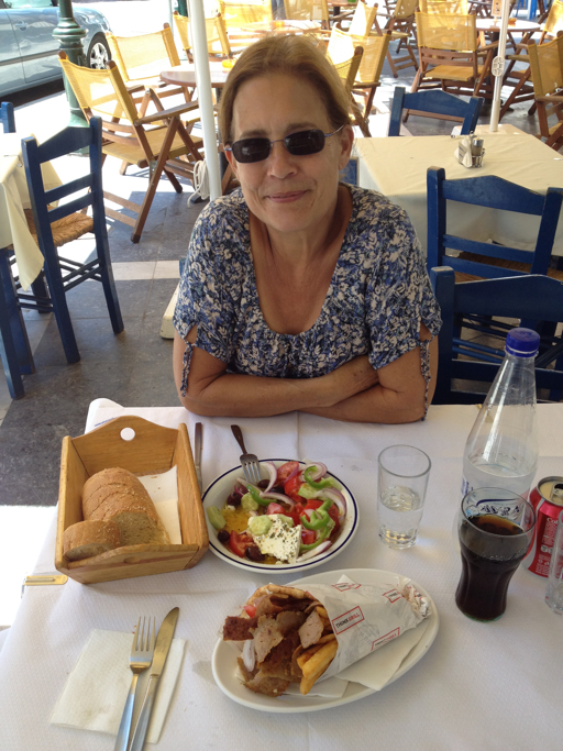 We had an excellent lunch while waiting for Kelly to land: Greek Salad and Gyro.