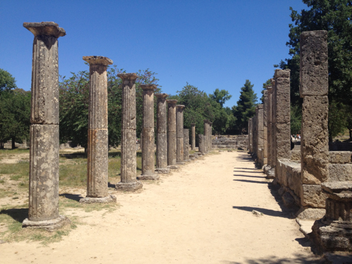 The Paleastra was a square columned structure, enclosed by a roof. Many of the columns have been reerected.
