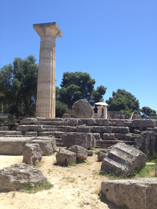 Here’s a picture of the foundation of the Temple of Zeus, in the process of being restored. The column you see was reerected from original components for the 2004 Olympic Games, held in Athens. The temple was originally constructed in 460 B.C.